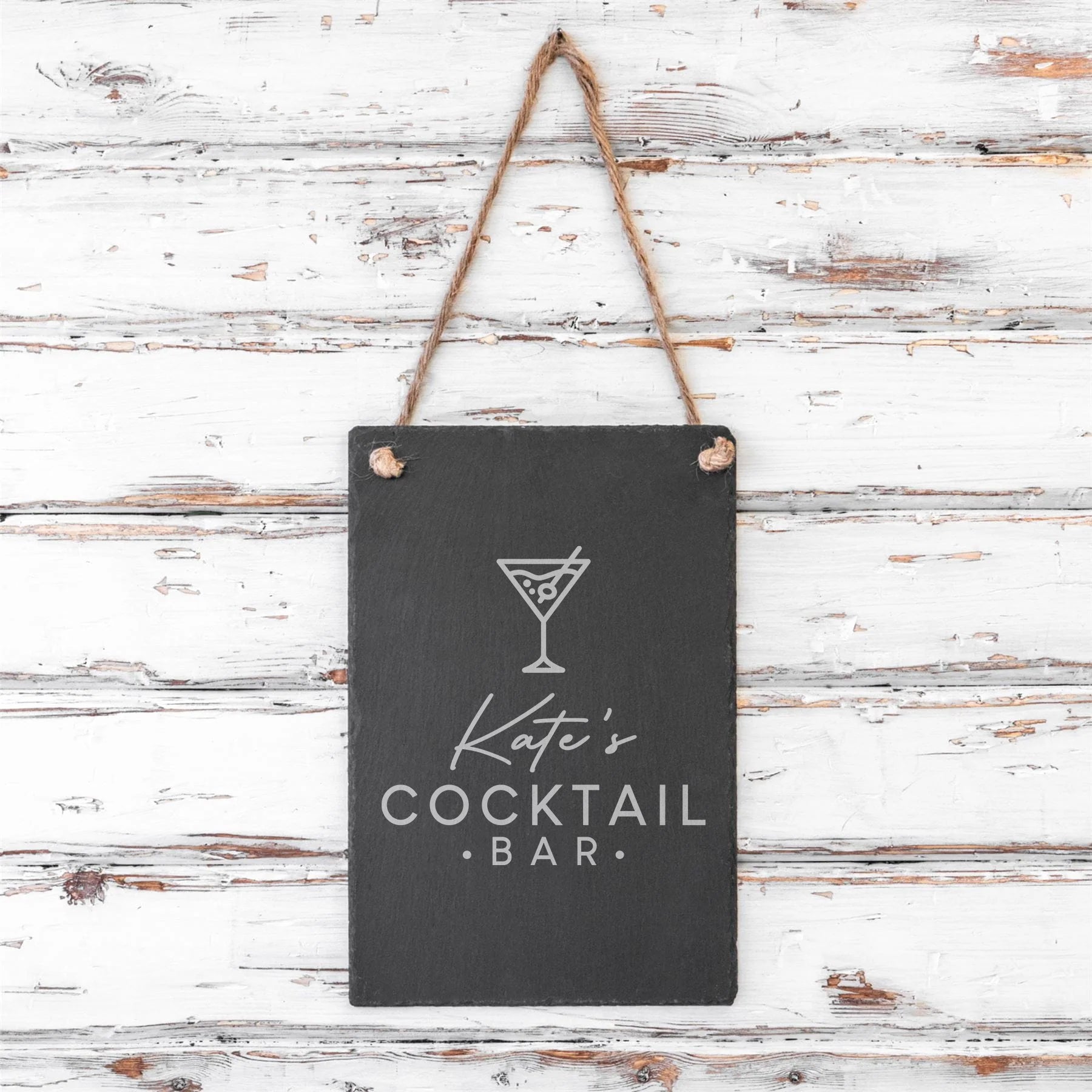 Slate Cocktail Bar Hanging Sign for Indoor or Outdoor Use