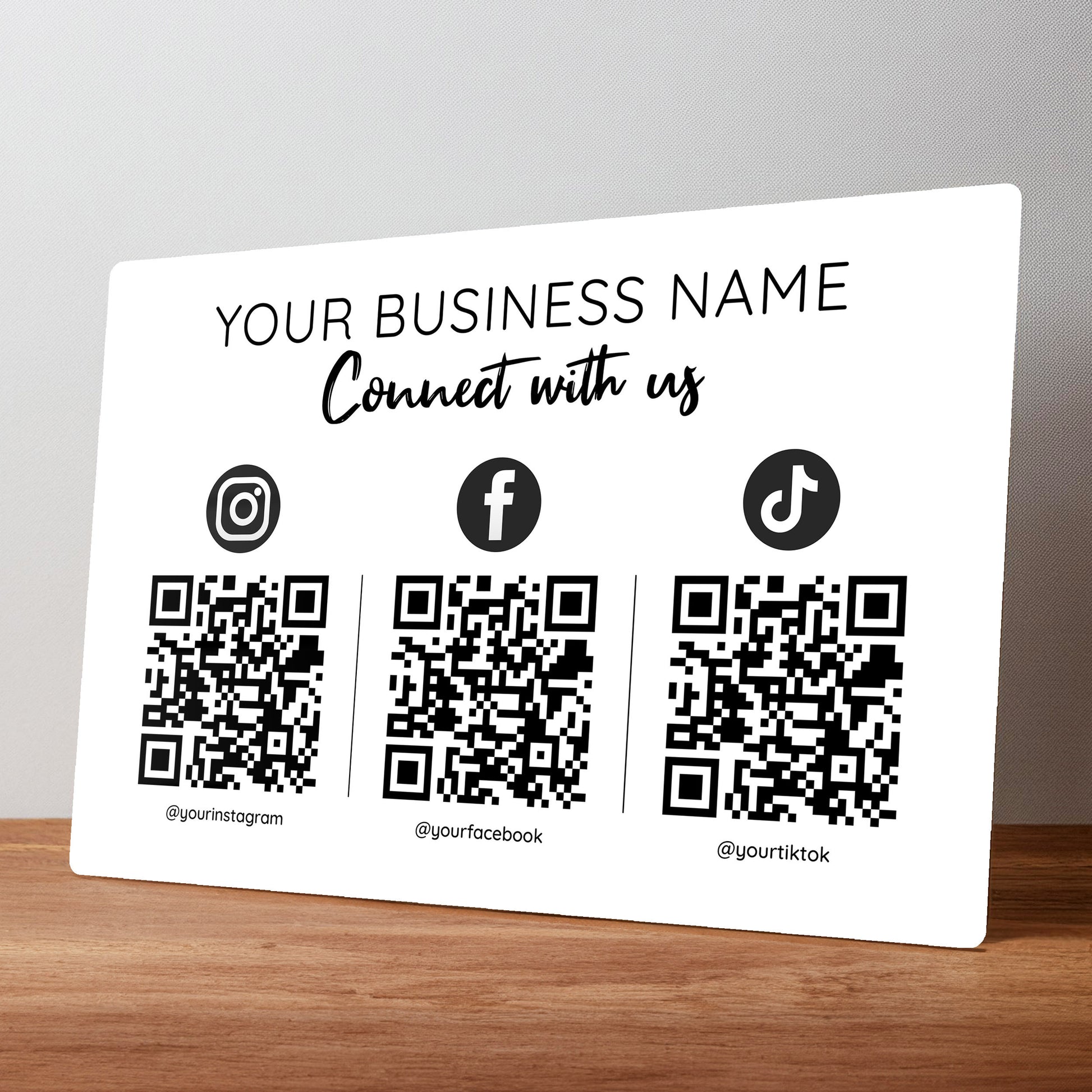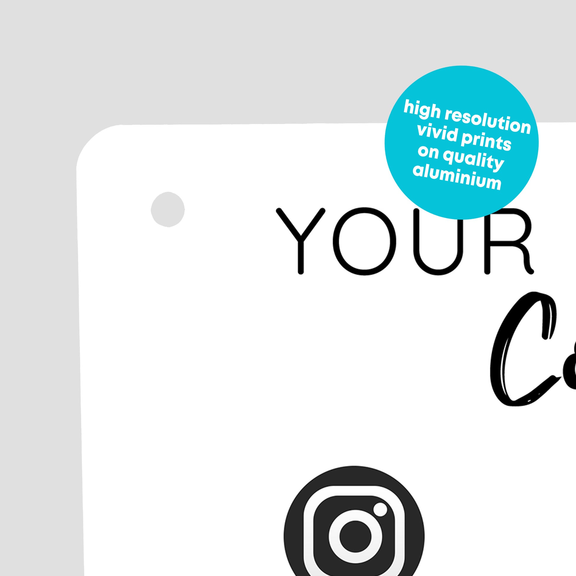 To create your sign we need your social media account details. Please copy and paste the full web address to your accounts and paste them in the personalisation box along with the business name and if you'd like the 'connect with us' text changing to something else.